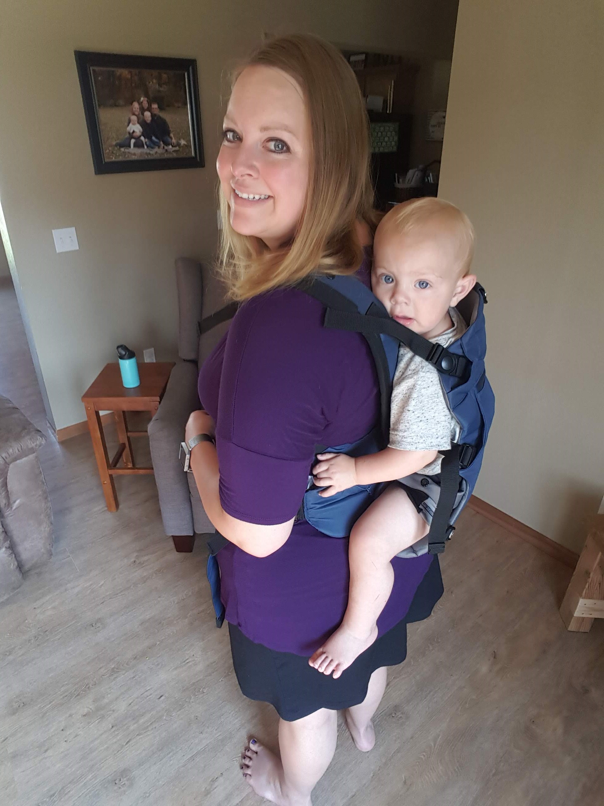 Comfort! The comfort of this thing is on point! I have a squirmy 16-month-old, and this carrier never digs in one place or irritates my back, shoulders, or hips, nor that of my little squirmers. I do have back and hip issues since having our last baby, so I see a chiropractor on a regular basis to keep my back in line. This carrier has never bothered my back one bit. My husband (a.k.a. Mr. Awesome) has a totally different build than I do, and he thinks it’s comfortable too!